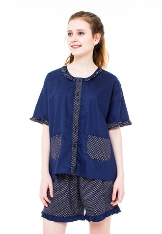 Atasan berkancing dengan kantong kecil .