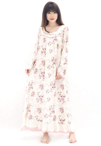 Daster lengan panjang dengan renda di bagian bawahnya.