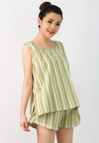Stelan celana pendek dengan atasan tanpa lengan .
