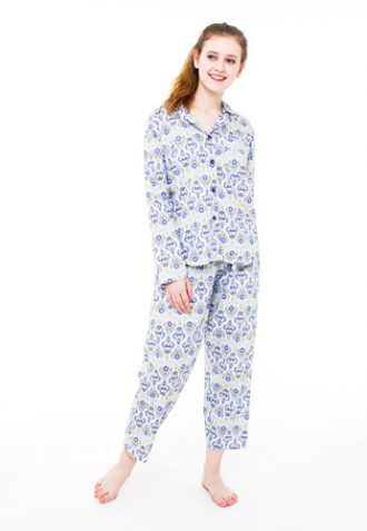 Piyama lengan panjang terbuat dari bahan katun yang nyaman dipakai.
