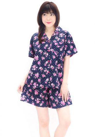 Baju tidur baby dolls motif bunga pink yang cerah.